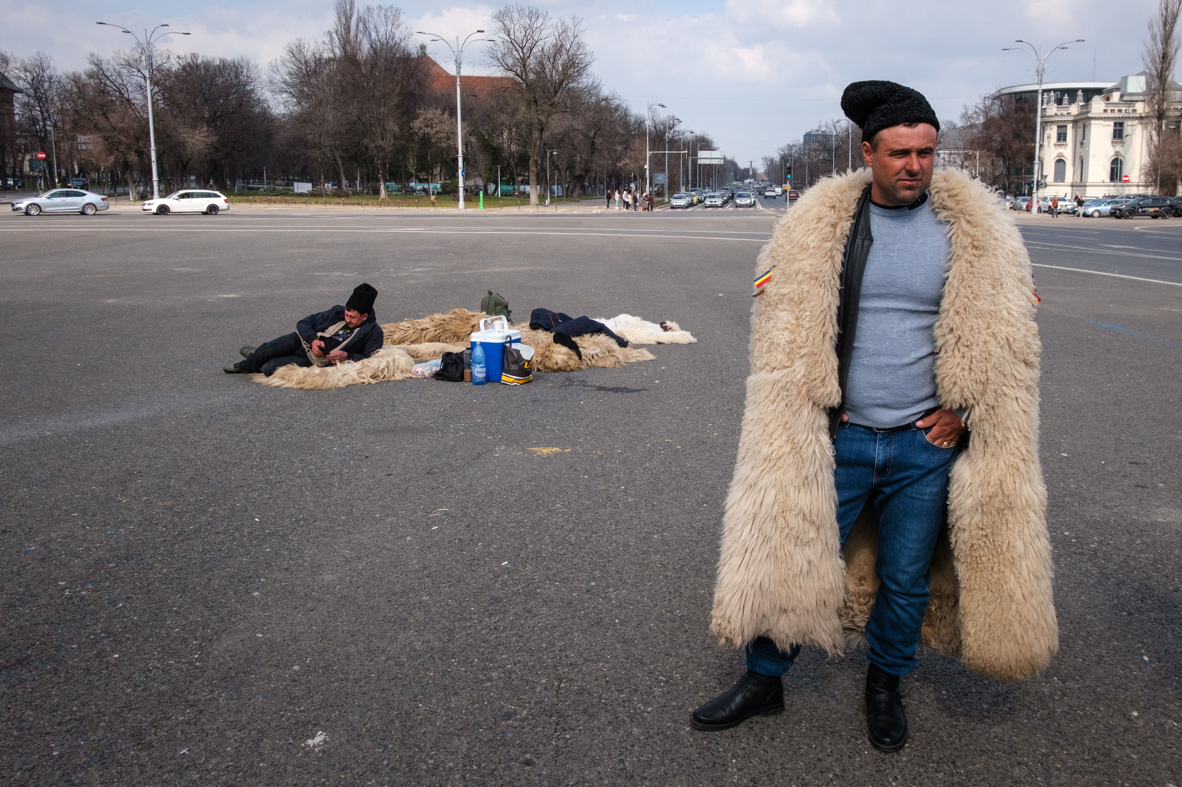 Sheep farmers protest against the Government in Victoria Square, Bucharest, March 16, 2026.