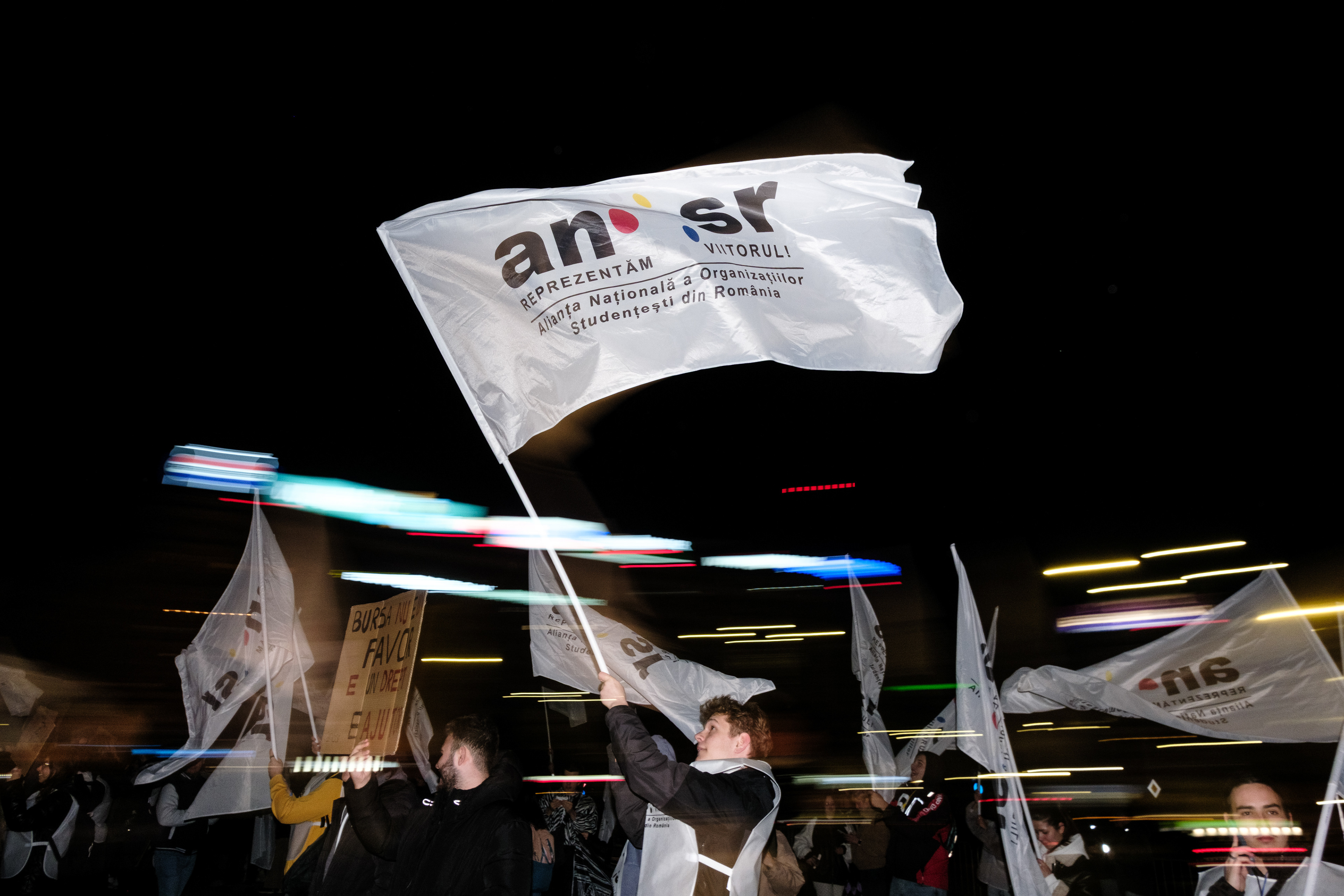 The National Alliance of Student Organizations in Romania (ANOSR) protests against austerity measures in education, in Victoria Square, March 14, 2026.
