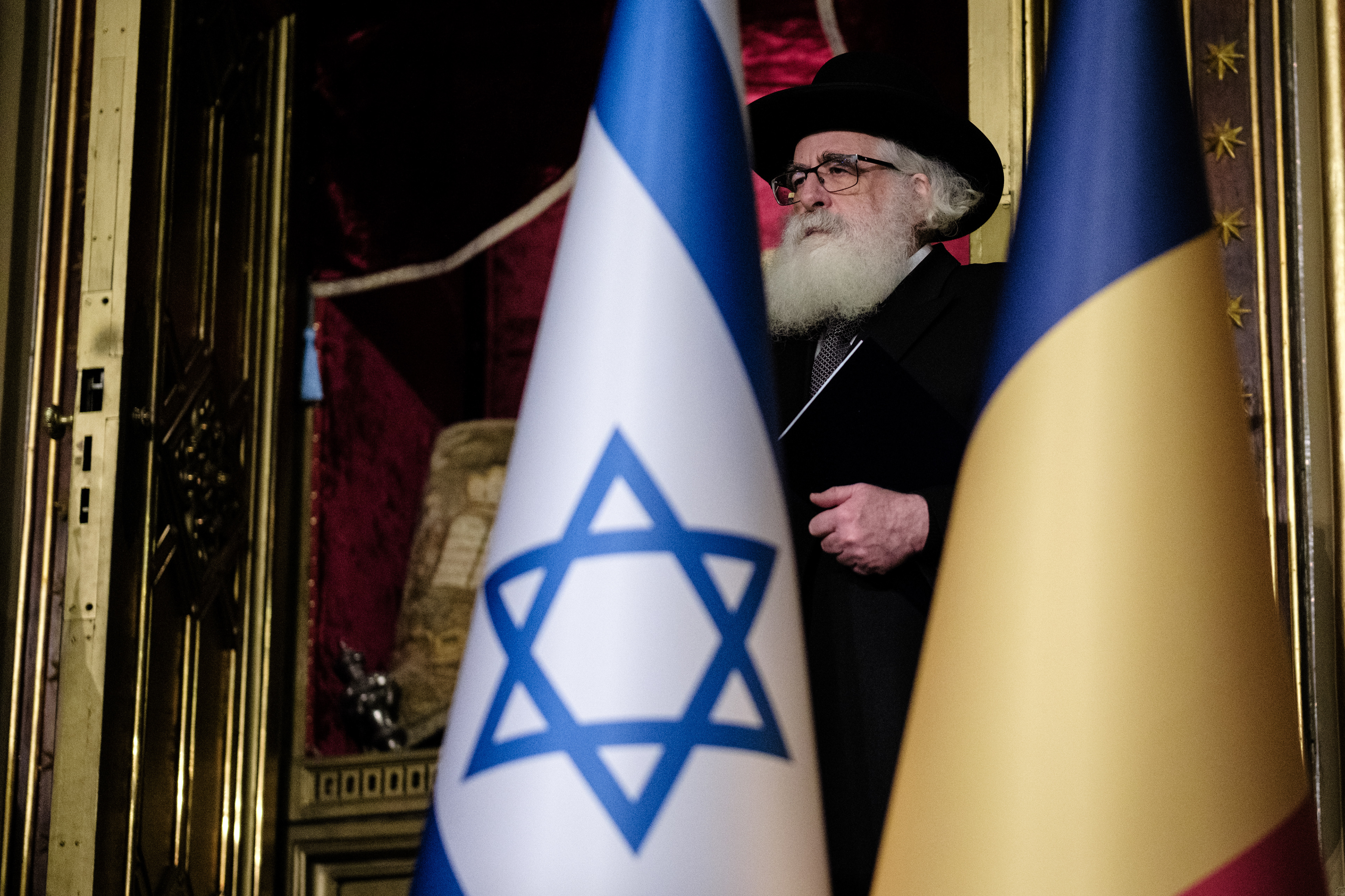 The Chief Rabbi of Romania, Rafael Shaffer, participates in the ceremony dedicated to International Holocaust Remembrance Day and the Commemoration of the victims of the anti-Jewish Legionary Pogrom in Bucharest, at the Choral Temple, January 26, 2026.