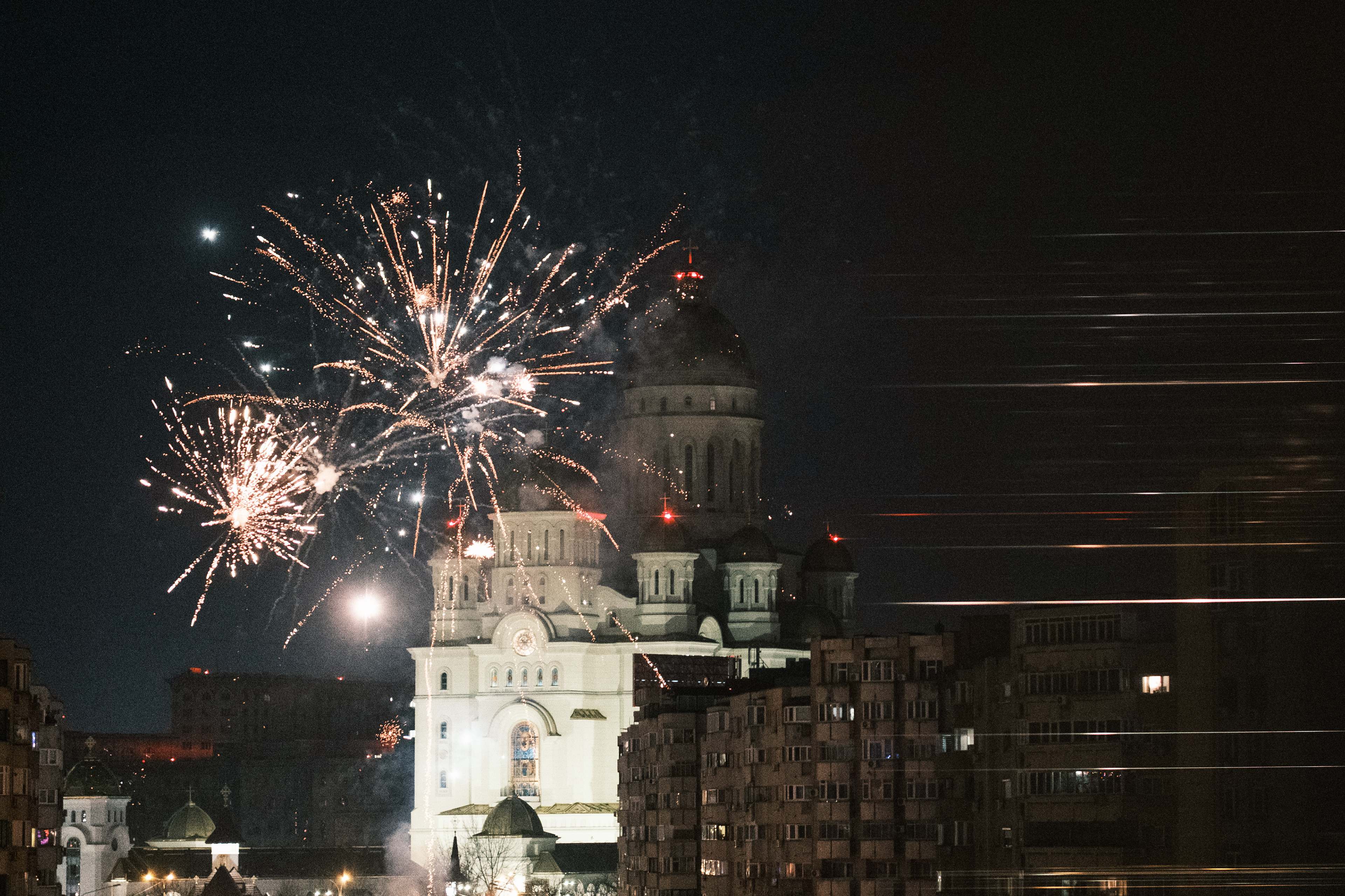 Fireworks near the National Cathedral during the 2026 New Year's Eve celebration. Bucharest, January 1, 2026.